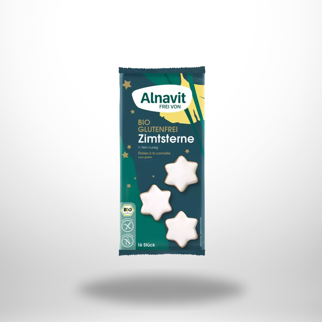 Alnavit Bio Zimtsterne. Bewusst naschen, weihnachtlich genießen – für eine festliche Zeit voller Geschmack und Wärme.
