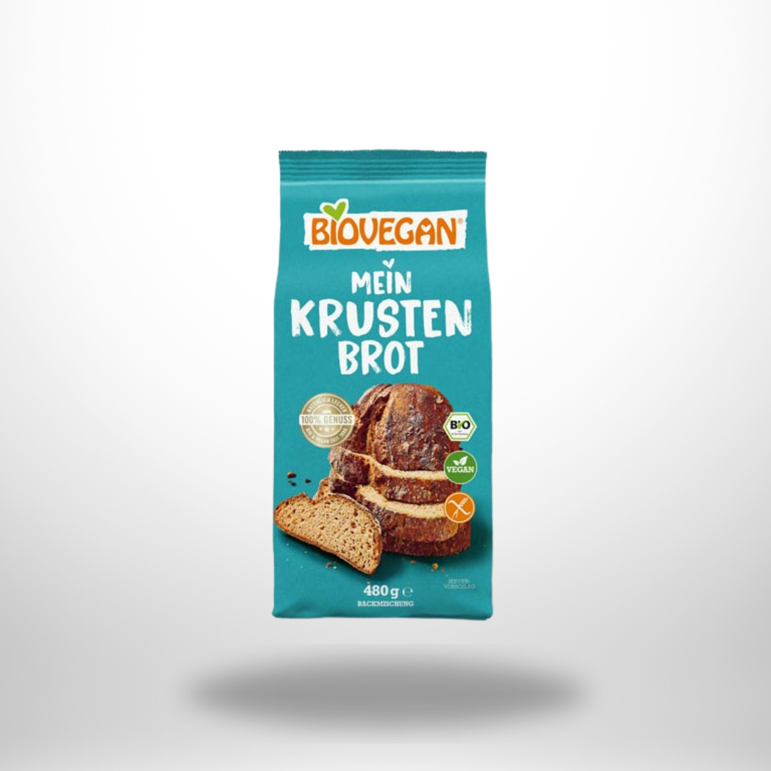 Biovegan Mein Krustenbrot Backmischung. Frisch gebackenes Brot mit ehrlichem Geschmack – genau so, wie selbstgemacht sein soll.