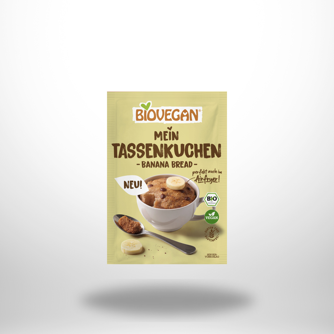 BIOVEGAN Mein Tassenkuchen Banana Bread. Frisch gebackener Genuss ohne das Küchenchaos.