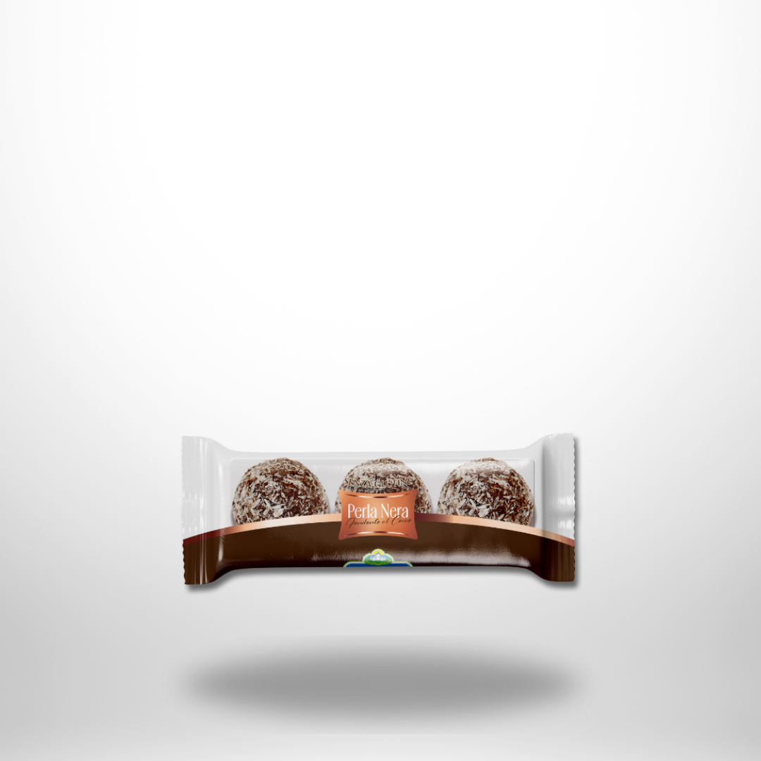 Die Happy Farm Perla Nera al Cocco st eine edle Praline: cremige Kokosfüllung in zartbitterer Hülle aus Kakao, Waffel und Schokolade. Ein exotischer Snack für besondere Genussmomente.