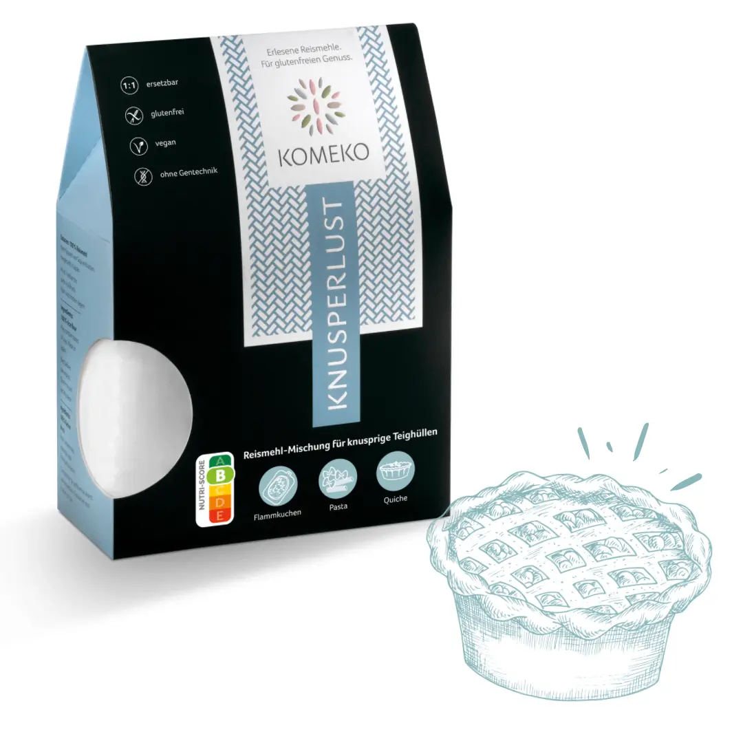 TIPP: Ersetze in Teigen Weizenmehl einfach 1:1 durch KOMEKO KNUSPERLUST – Geschmack und Konsistenz bleiben.