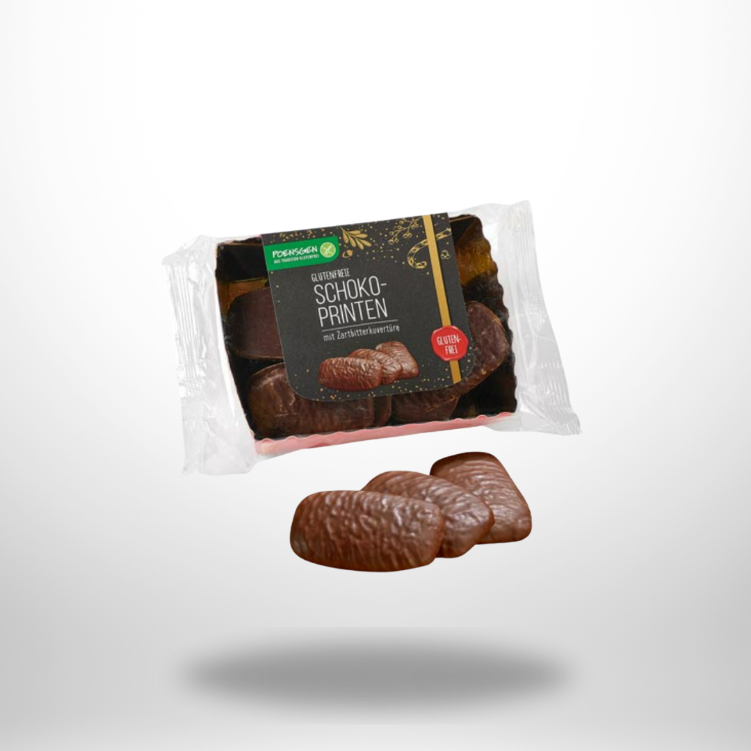 Schokoladig, würzig und traditionsreich: Die Poensgen Schoko-Printen kombinieren aromatische Printen mit einer edlen Zartbitter-Schokoladenkuvertüre. Diese glutenfreie Variante erlaubt es Genießern mit Glutenunverträglichkeit, klassische Printen mit vollem Geschmack zu erleben.